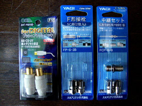 というわけで近くのホームセンターで分配用機材を購入してきました。(八木アンテナ製が多いです)全部で1万円チョットです。(この中で一番高いのがすき間ケーブルでした)